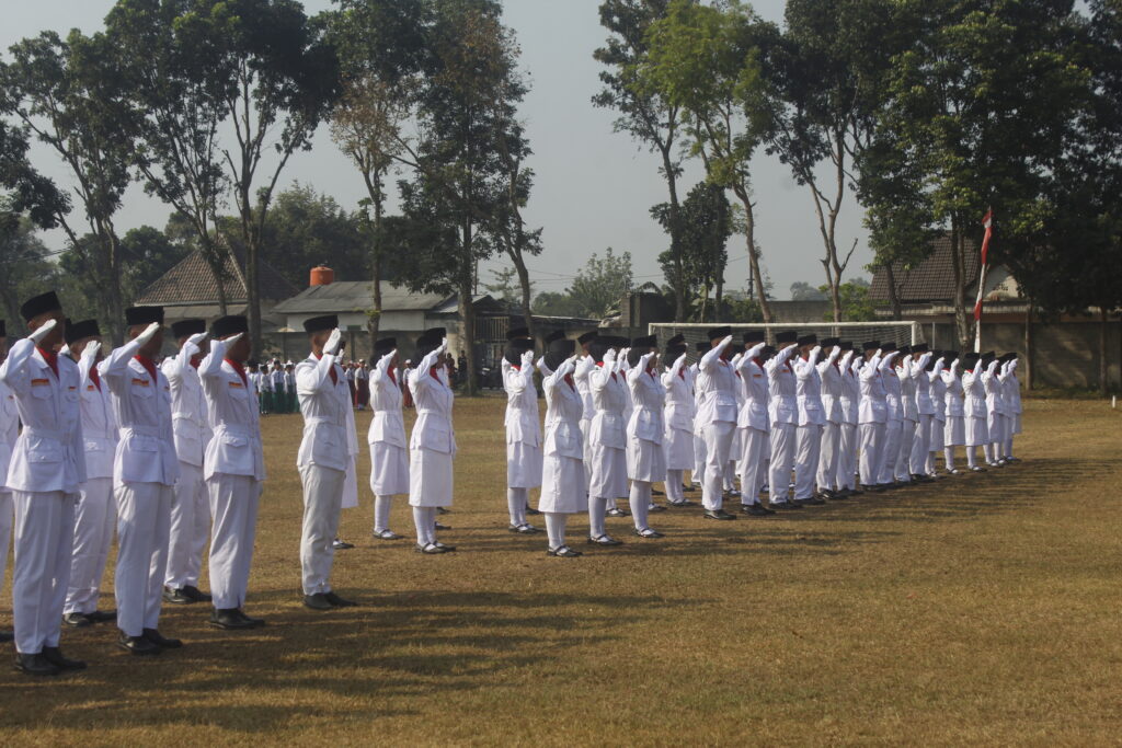 Paskibra MA Ar Rosyaad pada Upacara HUT RI ke-80 di Lapangan Ringinrejo