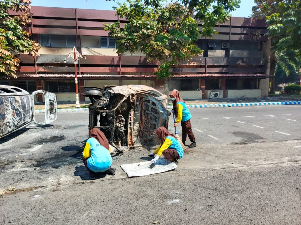 Relawan Tim Pramuka MA Ar Rosyaad Ikut Serta Ro’an di Gedung Pemkab Kediri Pasca Tragedi Demo