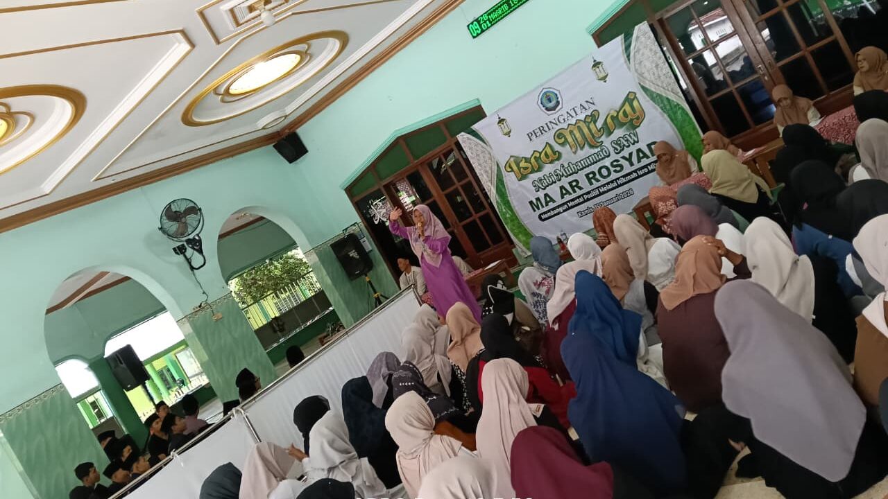 Madrasah Aliyah Ar Rosyaad menyelenggarakan kegiatan peringatan Isra Mi’raj Nabi Muhammad SAW pada hari Kamis, 15 Januari 2026. Kegiatan yang berlangsung dengan penuh kekhusyukan ini diikuti oleh seluruh civitas akademika Madrasah Aliyah Ar Rosyaad, mulai dari kepala madrasah, dewan guru, tenaga kependidikan, hingga seluruh peserta didik.