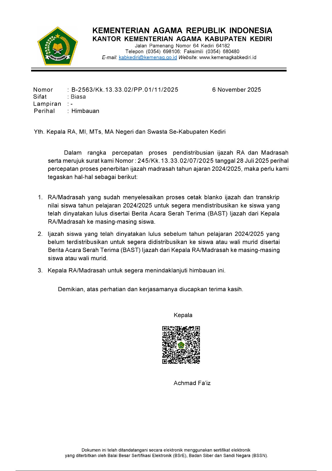Pihak madrasah menegaskan komitmennya untuk mematuhi arahan pemerintah dalam memperlancar distribusi ijazah serta memastikan bahwa layanan pendidikan berjalan sesuai regulasi yang berlaku.